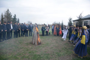 Tədbir kəndin mərkəzində, bayram əhval-ruhiyyəsində xüsusi zövqlə bəzədilmiş meydanda təşkil olunub. Rayon rəhbəri əvvəlcə meydanda qalanmış böyük çərşənbə tonqalını alovlandırıb.